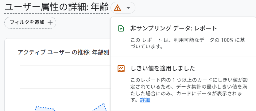 GA4では、特定のレポートを開いた際に「しきい値が適用されました」と表示されることがあります。